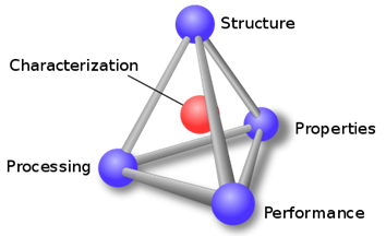 n组成:化学组成和矿物组成nn结构:微观结构、介观结构和宏观结构nn合成与加工(制备工艺)nn性能:材料本身所固有的性质nn使用性能:与使用性能相关联的性能